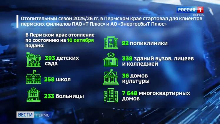 В Пермском крае к теплу подключено 100% объектов в соцсферы, за которые отвечают энергетики «Т Плюс». Также специалисты подали тепло в жилые районы. Работа систем теплоснабжения стабилизирована во всех населенных пунктах региона, где работает компания «Т Плюс».
