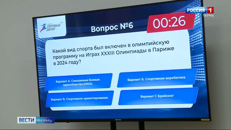 Андрей Ипатов, заместитель министра физической культуры и спорта Пермского края: "Диктант носит цель не выявить орфографические ошибки и пунктуацию, а всё-таки направлен на то, что у нас будут проверяться знания разных видов спорта, правила разных видов спорта. Министерство с удовольствием поддержало данную инициативу. Диктант включает 30 вопросов: 25 федеральных и пять региональных".