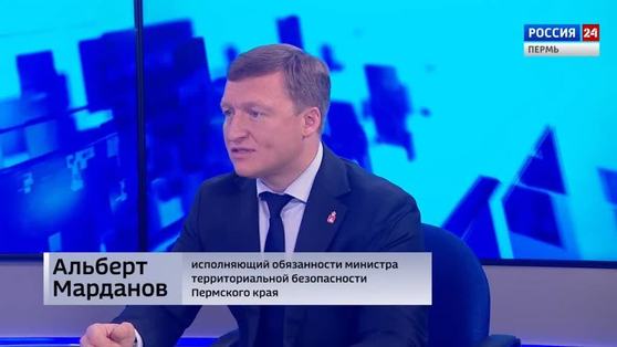Интервью с и.о. министра территориальной безопасности Пермского края Альбертом Мардановым. Темы - Единая система видеонаблюдения Пермского края и об...