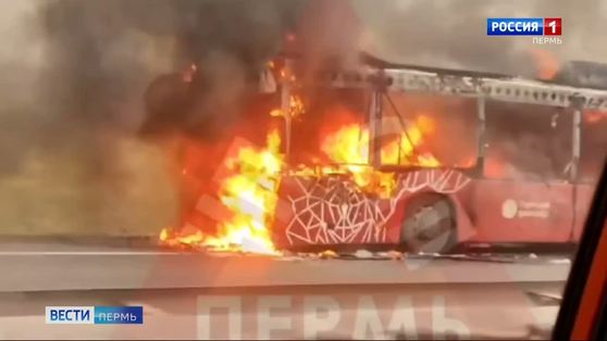 Крупный пожар сегодня утром произошел на Южном обходе Перми. Прямо во время движения вспыхнул и загорелся автобус. Он следовал по маршруту номер 106...